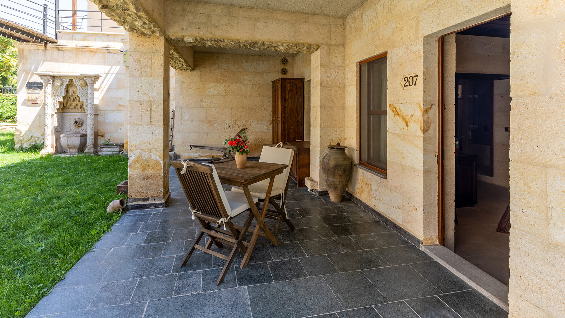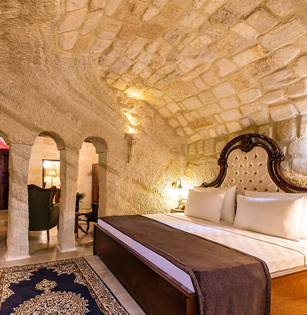 The Junior Suite is born from the sense of expansion and breathing hidden within Cappadocia’s stone. Shaped within the natural rock formation, this space offers a more liberated experience by separating the living area from the sleeping area. The past carried by the stone walls is complemented by volumes deepened through light and refined, understated details. The Junior Suite forms part of a calm and fluid narrative, designed for those who have no place for haste and who wish to experience time at their own rhythm.