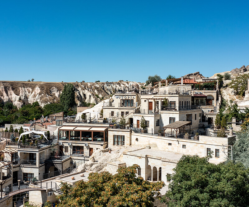 Check Out the RoomsThroughout the property, luxury is never announced. It is felt in the rhythm of space, the flow of light, and the intentional use of silence. From our terraces overlooking Cappadocia’s layered landscape, time slows, allowing guests to connect more deeply with place. Our restaurant follows the same philosophy. Rooted in seasonality and respect for local produce, the culinary experience is refined, honest, and unforced, accompanied by carefully selected regional wines. At Utopia Cave Cappadocia, our purpose is not to offer a fleeting stay, but a meaningful journey shaped by heritage, restraint, and conscious comfort.
